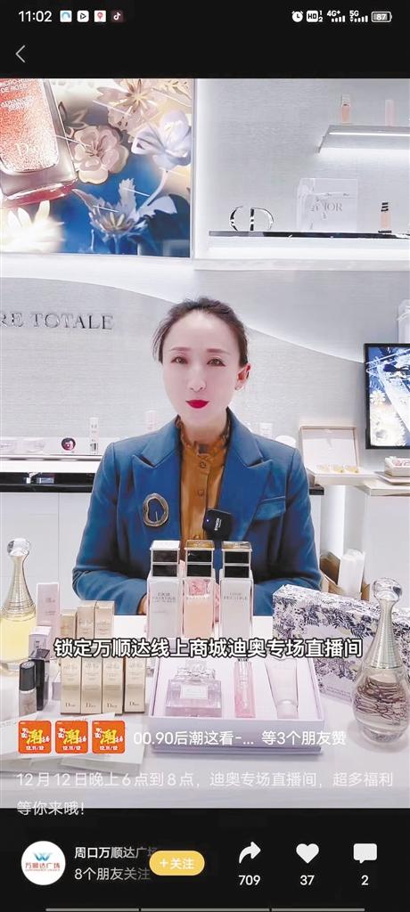 除此之外,郭俊霞开始带领万顺达广场的高管上阵卖货,收获不小。“大家好,我是万顺达广场常务副总郭俊霞,12月12日是我们万顺达广场15周年庆典,原价990元的迪奥全能燕窝水在我的直播间只需要792元,另外赠送两支赋活精华和一支修复霜;原价350元的迪奥999口红,在我的直播间只要280元……”12月10日,记者采访时看到,郭俊霞正在直播中预告“双十二”相关活动。