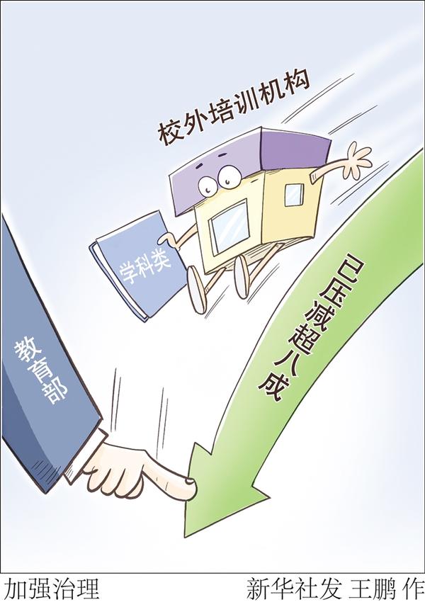 记者12月21日从教育部新闻发布会获悉,“双减”政策实施以来,校外培训治理工作取得了明显进展,学科类培训大幅压减,目前线下校外培训机构已压减83.8%,线上校外培训机构已压减84.1%。 新华社发 王鹏 作