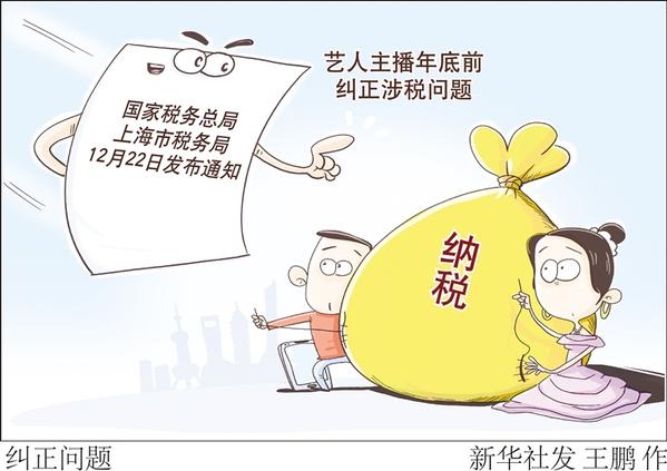 国家税务总局上海市税务局12月22日发布通知指出,依法纳税是每一个公民应尽的义务。明星艺人、网络主播等社会公众人物,更要严格遵守税法规定,年底前纠正涉税问题。 新华社发 王鹏 作