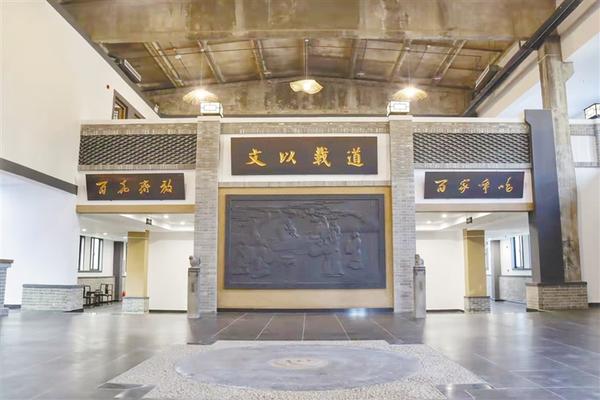 更何况,我们还有一位伟大的老乡——被誉为“道德文章天下第一”的老子。“老子”这两个字,不管是作为一个人的人名、一本书的书名,还是作为一种文化的名称,都早已名动天下。进得馆来,一眼可见对老子的尊崇:对着文学馆大门“文以载道”的匾额下,就是“孔子问礼于老子”的黑色浮雕。
