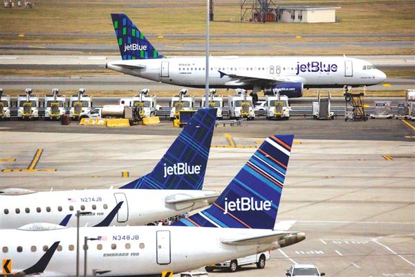 当地时间1月3日,客机停在美国纽约肯尼迪国际机场。
