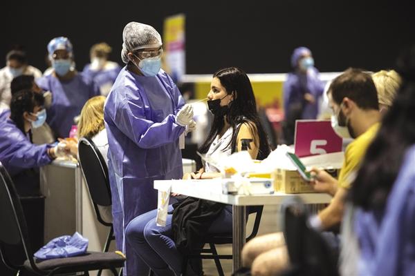 1月4日,人们在阿根廷布宜诺斯艾利斯接受新冠病毒检测采样。