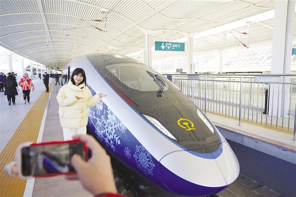 当日,北京冬奥列车亮相京张高铁。据介绍,北京冬奥列车全部使用时速350公里复兴号动车组开行,并配备5G超高清演播室。冬奥列车编组8辆,定员564人,外观采用“瑞雪迎春”涂装方案,彰显冬奥主题。 北京冬奥列车将在1月21日至3月16日的冬奥运输期间开行,每日安排开行40对运输方案,其中基本方案17对,每日开行;预备方案23对,视需开行。 新华社记者 鞠焕宗 摄