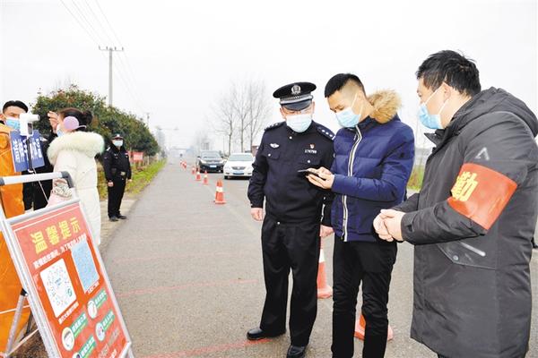 1月6日,民警在S223省道市界南商水县大武乡苦子王村执勤点服务返乡民工。元旦过后,商水县公安局在该县9个乡镇设立公安民警联合执勤点,全天候战斗在疫情防控一线,以实际行动全力以赴做好疫情防控工作,并随时接受过往司乘人员和人民群众的报警求助。③6记者 马治卫 通讯员 郭利军 摄