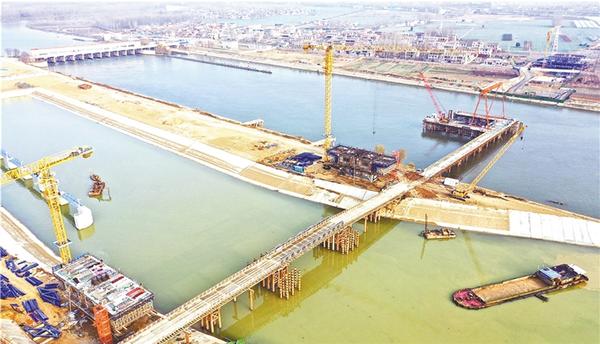 G106淮阳至项城段改建工程项目是我省普通干线公路网规划调整方案中G106的重要组成部分,整个项目建成后,将进一步拉大项城市城区的框架,改变G106穿城区而过的现状,解决大型车辆从城区穿行的问题。同时,该道路可直达高铁淮阳南站,将大大方便项城市民乘坐高铁出行。图为航拍沙颍河特大桥工程整体施工场面。记者 张志新 摄