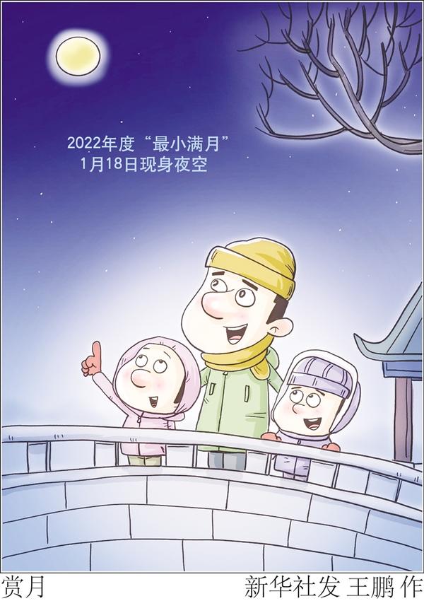 1月18日,农历腊月十六,一轮满月将现身夜空。这轮满月有些特别,它是农历辛丑牛年最后一轮满月,也是2022年第一轮满月,更是2022年度“最小满月”。 新华社发 王鹏 作