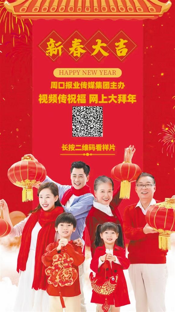本报讯 春节即将到来,受疫情影响,全国不少地方提倡就地过年。在此特殊背景下,周口报业传媒集团决定开展周口社会各界“视频传祝福 网上大拜年”迎新春活动,展现周口一年来的发展成就,共同为伟大祖国祝福,向各方亲人朋友报送平安、恭贺新年。