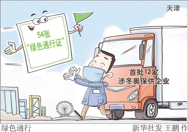 记者从天津市商务局获悉,受当前疫情影响,部分涉冬奥食品保供企业运输车辆人员往返京津两地受限。为支持北京冬奥会筹办工作,确保涉冬奥物资防疫安全,天津市商务局向12家涉冬奥保供企业发放了54张“绿色通行证”。新华社发 王鹏 作