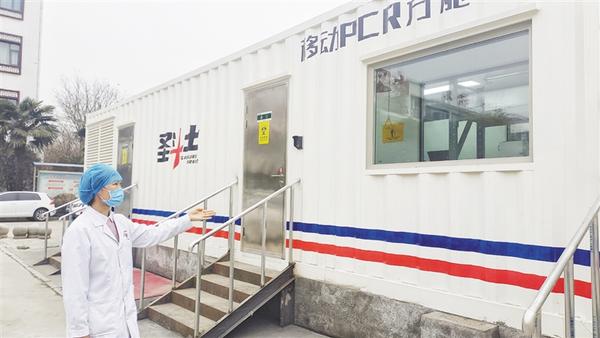 1月20日,医护人员在调试设备。日前,2个“圣斗士”方舱实验室落户项城,均已组装完毕,正在准备验收,预计1月25日前后投入使用。据了解,这2个实验室日检测量为2万管,如样本按照目前的“10混1”比例进行筛查的话,日检测量最高可达20万人份,是项城当前日检测量的约3倍,将大大提升全市核酸检测能力。记者 张志新 摄