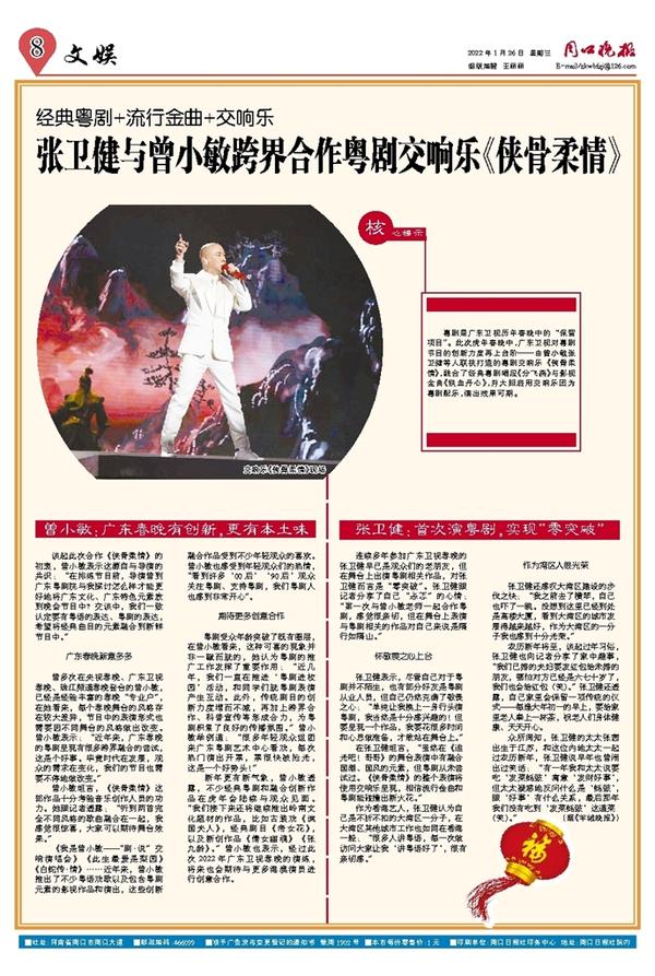 新年更有新气象,曾小敏透露,不少经典粤剧和融合创新作品在虎年会陆续与观众见面。“我们接下来还将继续推出岭南文化题材的作品,比如古装戏《谯国夫人》,经典剧目《帝女花》,以及新创作品《倩女幽魂》《张九龄》。”曾小敏也表示,经过此次2022年广东卫视春晚的演练,将来也会期待与更多港澳演员进行创意合作。