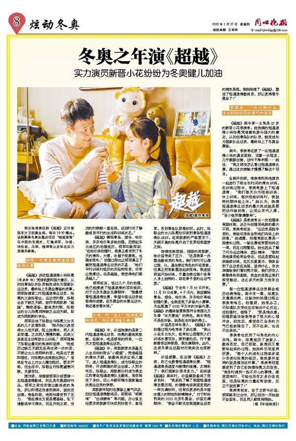 沙溢透露,在出演《超越》之前,自己也爱看短道速滑比赛:“短道速滑是速度与激情的碰撞,太精彩了!我们国家队很有实力。”在阅读《超越》剧本时,沙溢辅助查阅了很多资料:“我系统了解了我国短道速滑发展历程,的确像电视剧里呈现的一样充满坎坷,但背后更多的是中国冰雪人的韧性和拼搏精神。”对于即将到来的2022北京冬奥会,沙溢充满期待:“我会不断关注我国家运动员的精彩表现。我刚刚演了《超越》,塑造了短道速滑教练员,所以更得看冬奥会了!”