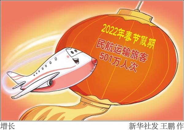 记者2月7日从民航局获悉,2022年春节假期(1月31日至2月6日)全国民航共运输旅客501万人次,比2021年春节假期同期增长40.2%。 新华社发 王鹏 作