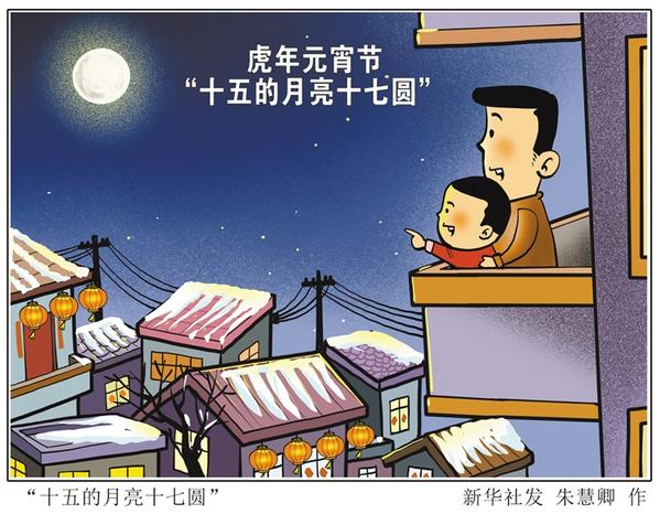 2月15日,将迎来壬寅虎年的元宵节。令人惊讶的是,虎年的元宵月不是“十五圆”,也不是“十六圆”,而是“十七圆”,最圆时刻出现在2月17日0时56分。新华社发 朱慧卿 作