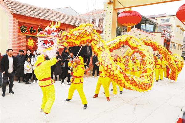 元宵节前夕,扶沟县韭园镇小王庄村舞龙队的舞龙表演,让群众近距离感受了传统民俗文化的独特魅力。 记者 王映 通讯员 黄金峰 摄