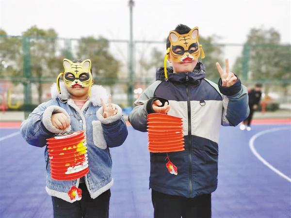 2月15日,川汇区城南街道办事处联盟新城社区广场上热闹非凡,一群戴着老虎面具的“虎娃”参加了由川汇区民政局、川汇区城南街道办事处、周口市青昱社会工作服务中心举办的“童心手拉手 欢乐闹元宵”活动。记者 窦娜 摄