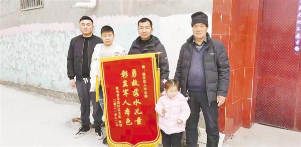 2月6日,大年初六。在他家中,李全明又见到了自己亲手救下的两个孩子,其中小男孩12岁,小女孩3岁。同时,李全明还收到孩子家长送来的一封感谢信和一面写有“勇救落水儿童 彰显军人本色”的锦旗,时间落款都是2021年12月。