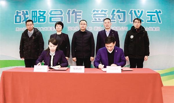 本报讯 周口市在新能源科技领域又迈出坚实一步!2月18日,随着签约仪式成功举行,中原众恒集团与国电投(河南)新动力科技有限公司正式达成战略合作,预计总投资6亿元的周口市中心城区及各县市新能源汽车充换电网络项目、中原众恒集团周口大道新能源汽车城项目也被提上日程。