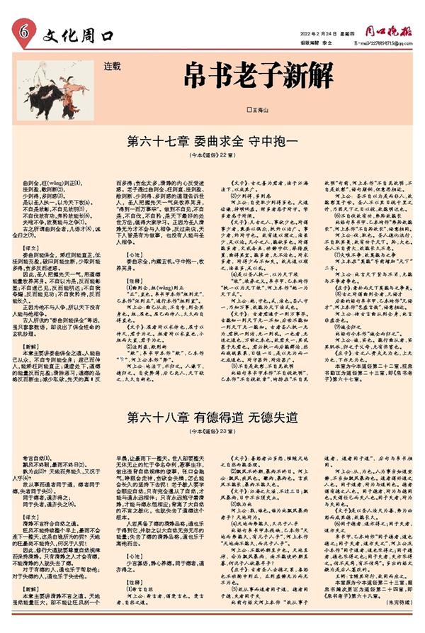 本章为今本道经第二十二章,按帛书勘正为道经第二十三章,即《帛书老子》第六十七章。