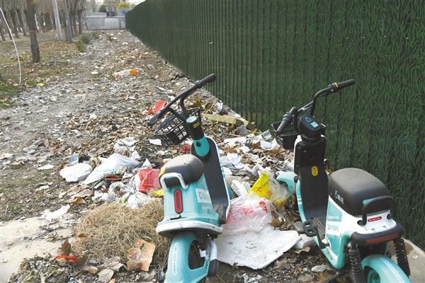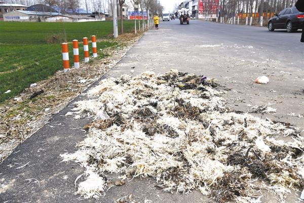 黄泛区实业集团五分场北道路两侧有多处乱扔乱倒生活垃圾和废弃衣物现象