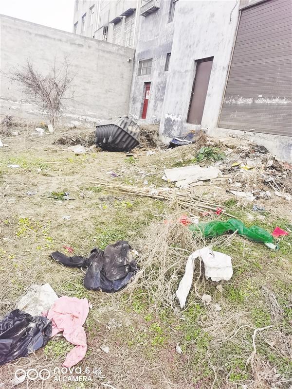 太康县朱口镇鑫源装饰门店楼后有陈年垃圾堆和杂物,未见整治迹象
