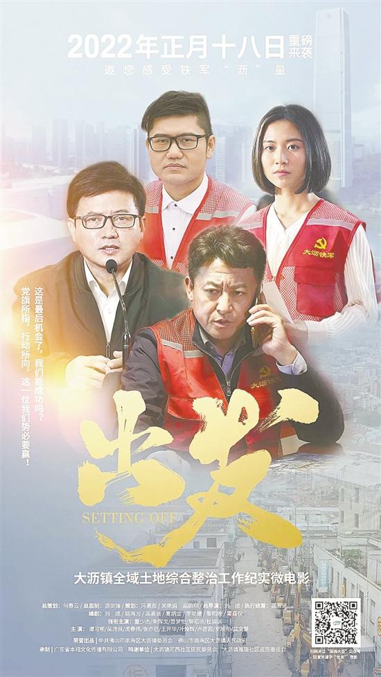 近日,广东省首部全域土地综合整治纪实微电影《出发》通过多平台进行线上展播。该微电影根据真实事件改编,以佛山南海大沥镇工作人员进驻村居大攻坚为叙事主线,用巧妙的手法重现了“大沥铁军”勇担当、聚合力、破难题的励志故事。作为一部政务宣传微电影,《出发》拍得接地气,很生动。影片上线24小时,观看量已超过50万人次。