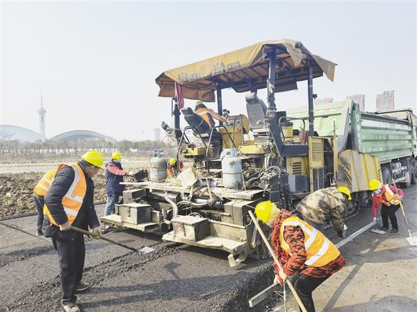 庆丰路东延项目全长3.2公里,道路红线宽度35米,目前已完成大成路以东至武盛大道段,现正在实施大成路以西至人和路段路基工程。“在市城乡一体化示范区住建局的大力支持下,我们正月初八就已复工。复工以来,我们严格按照疫情防控相关政策,对进场工人实行健康监测,每天上下班测量体温,对项目施工场地进行多次消毒。现阶段工程正在进行水稳层铺设,下一步将进行道路沥青面层铺设。接下来我们将加班加点,持续加大人力物力投入,在保障工程质量的前提下,赶工期、筑形象,争取早日完工通车。”该项目负责人马玖鹏说。