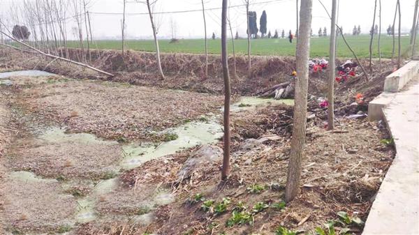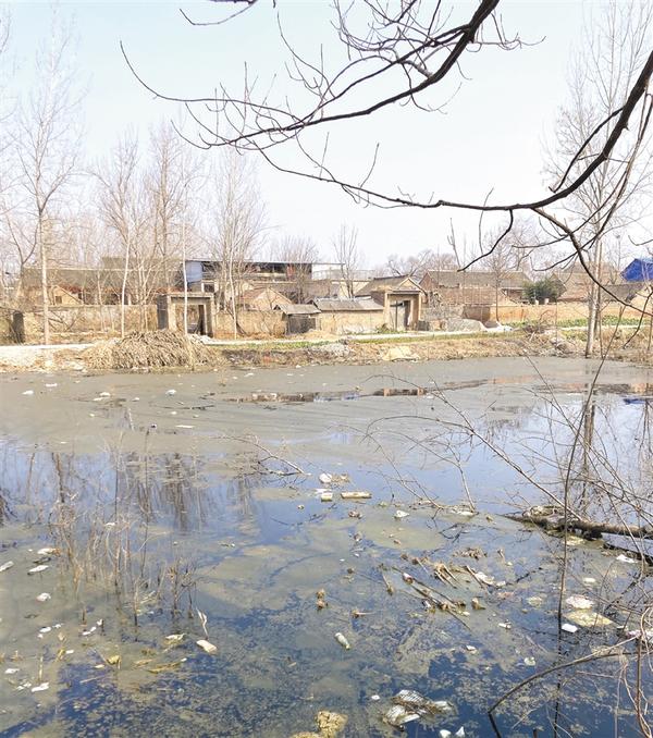 太康县芝麻洼乡政府附近坑塘内有白色垃圾、秸秆