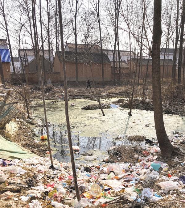 西华县址坊镇后闫行政村垃圾暂存点存在垃圾乱扔、污水横流、污水直排坑塘等现象