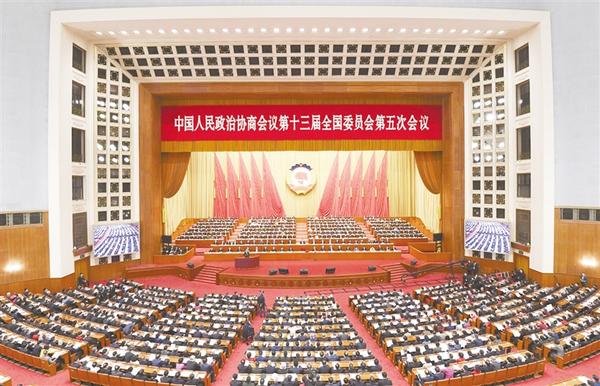 大会首先审议通过了政协第十三届全国委员会第五次会议议程。