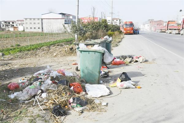 沈丘县东城办事处张楼村南220国道西侧路边垃圾未入箱,沟边存在乱倒垃圾且有焚烧痕迹等现象
