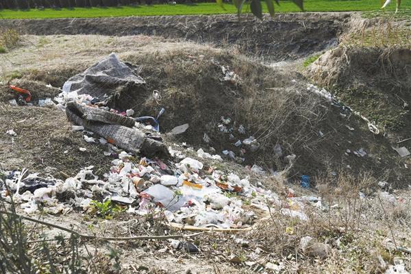 郸城县钱店镇朱新桥村西220国道西侧沟内存在多处乱倒垃圾现象