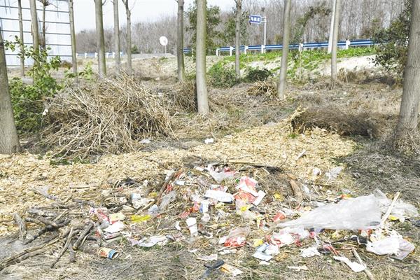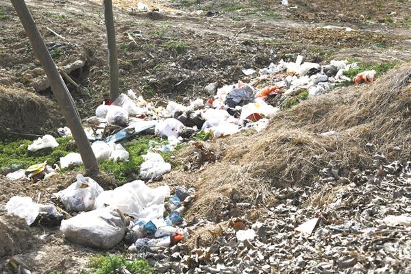 郸城县钱店镇杨寨村东220国道西侧入村道路口存在多处乱倒垃圾现象