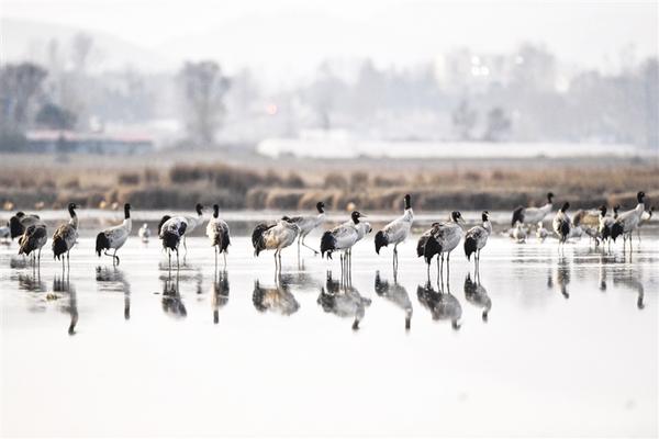 随着天气逐渐转暖,在贵州草海国家级自然保护区越冬的黑颈鹤、灰鹤、斑头雁等候鸟开始陆续迁徙。新华社记者 杨文斌 摄