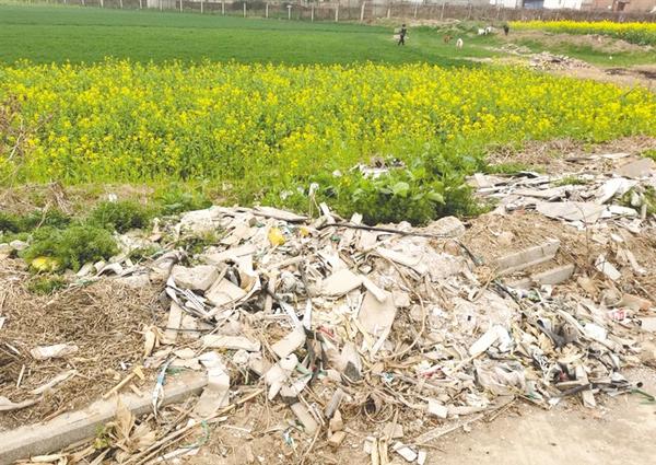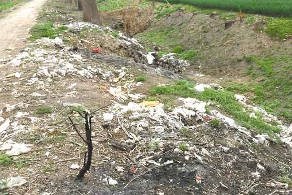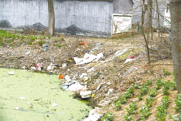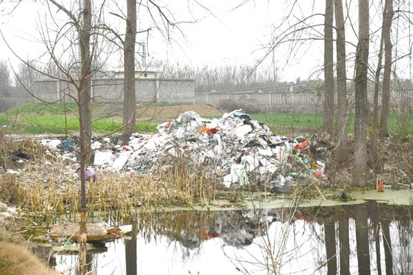 市经济开发区淮河路办事处姚滩行政村李三所楼村东南坑边散落垃圾多