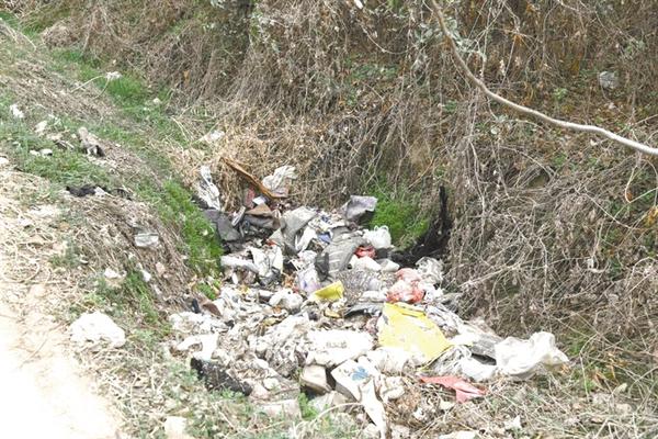 港口物流产业集聚区李埠口办事处刘庄行政村西南铁路北坑塘沟边有多处乱倒生活垃圾和杂物