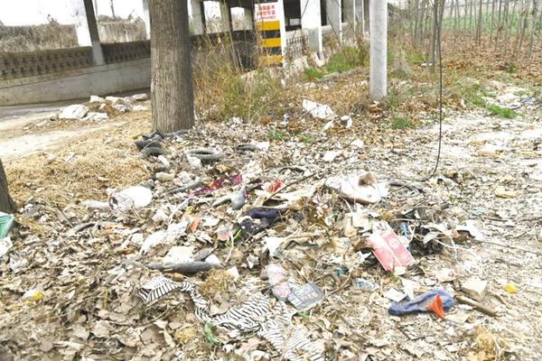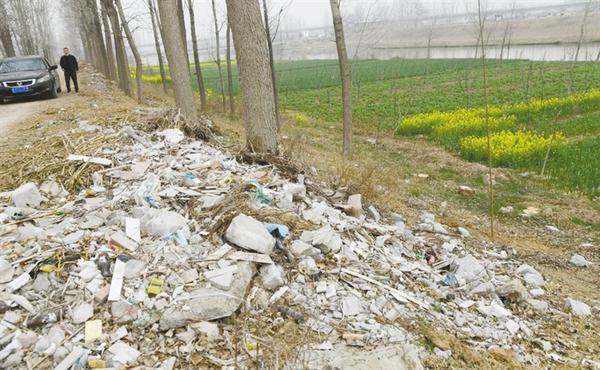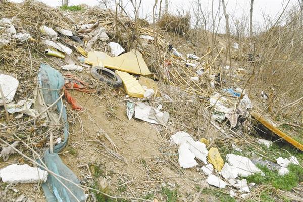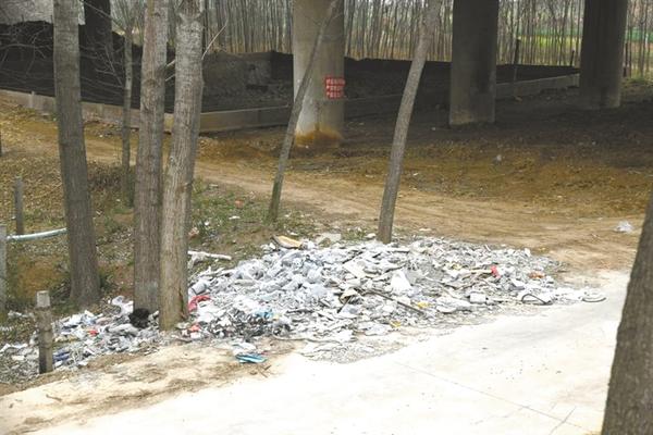 市城乡一体化示范区许湾办事处沙颍河堤北岸大广高速下有乱倒建筑垃圾和杂物