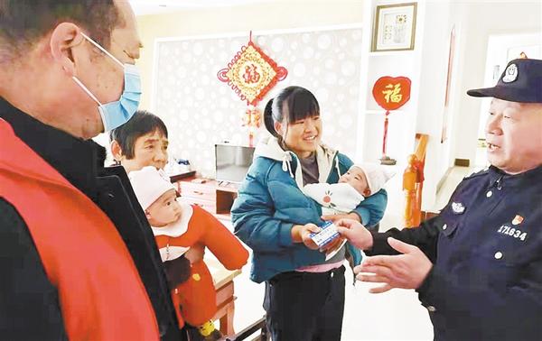 3月15日,项城市花园街道办事处袁桥社区民警丁高岭向居民发放“警民联系卡”。