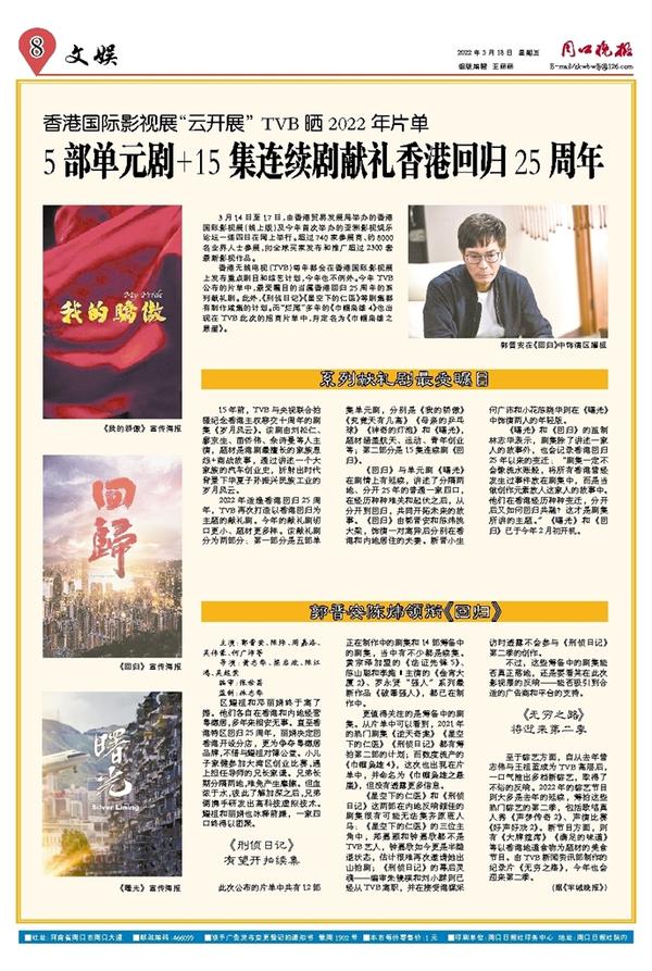 2022年适逢香港回归25周年,TVB再次打造以香港回归为主题的献礼剧。今年的献礼剧切口更小、题材更多样。该献礼剧分为两部分:第一部分是五部单集单元剧,分别是《我的骄傲》《究竟天有几高》《母亲的乒乓球》《神奇的灯泡》和《曙光》,题材涵盖航天、运动、青年创业等;第二部分是15集连续剧《回归》。