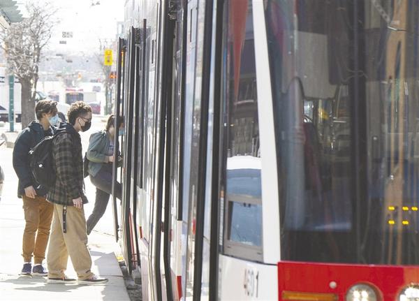 当地时间3月21日,在加拿大多伦多一处车站,戴口罩的乘客排队上车。