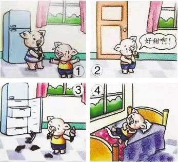 他趁妈妈出门办事的时间,偷偷地把冰箱里的冰淇淋全吃完了。后来,他躺在床上,肚子疼得直打滚。猪妈妈见状关心地问:“宝贝,你怎么了?”小猪哭着说:“妈妈,我没忍住,把冰箱里的冰淇淋都吃完了。”小猪向妈妈承认了自己的错误。妈妈说:“承认错误,并且改正,以后还是好孩子。”