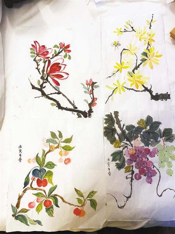 因为还在抗疫一线工作,欧阳雪珂展示了手机里存的4幅画作,分别画着春天的花朵、正在结果的桃树,和已经挂果的紫色和绿色葡萄,色彩鲜明线条流畅。“我没想到阿姨能在隔离结束后送我4幅作品,我虽不懂画但是很珍惜阿姨的劳动成果,也以此激励自己更好地为群众服务,齐心协力打赢疫情防控这场硬仗。”欧阳雪珂说。