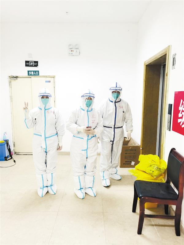 医疗队主要负责所有隔离区的工作,全体队员几乎整天都在这里,24小时轮班工作。环境消杀、心理疏导、核酸检测、废弃物处理、感染控制……经过一天忙碌而紧张的工作,有的队员出现了呕吐,有的累得直不起腰来,可大家的工作热情依然高涨,没有一人叫苦叫累,反而相互鼓励,甚至还以开玩笑来缓解一天的疲劳。冀战一告诉记者,他被大家积极乐观的工作态度所感染,那一天他写下了这样的文字:疫情的严峻程度和任务的艰巨程度已经远超我们的预期,在过去的24小时内,转出、解除隔离人员12人,转入新冠核酸阳性患者1人,转入密切接触者10人,完成相当于8层楼的打扫、清理医疗垃圾、消杀任务,归置医疗用品、药品数百件,完成核酸采集200余人次,完成送餐任务近600人次,完成送药任务400余人次,还有数不清的对被隔离人员和家属的安抚解释工作。很多队友累得直不起腰来,队员们的衣服被汗水浸透,湿了又干,干了又湿,更有队友因劳累、含氯消毒剂刺激而反复呕吐,但他们短暂休息后又迅速回到工作岗位。接下来的24小时,我们还要面临40人的转出解释工作、隔离区的消杀任务并接收约40名密接人员。这的确是一场抗疫阻击战,我们现在才深深体会到任务的艰巨性和复杂性,但是,我们已经站在了冲锋线上,容不得半点犹豫和彷徨,只有冲上去,迎接挑战。战友们,让我们携起手来,团结一心,用青春和汗水为战胜疫情贡献力量!