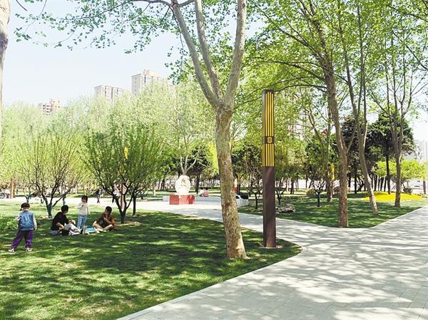 暖风吹得游人醉。林下运动场、土山石桥、儿童乐园、阳光草坪、生态湿地……当天,很多市民不时欣喜地发现“新大陆”:改造后的公园无论在生态景观、功能配套,还是园林绿化、人文特色上均增添了许多新元素,衰败多年的老旧公园也焕发出了新的活力。记者观察到,拆除了高高的公园围墙,被“关”住了的满园春色喜悦地“跳”了出来,映入人们的视线。围墙拆除后,呈现在市民面前的是街景与园景的自然融合,公园园路、便民服务等为一体的崭新景观,沿街通往公园的小路四通八达,在公园里休闲散步晒太阳的市民随处可见。虽然临近中午,仍有不少市民驻足逗留,或拍照或嬉戏,或野餐或闲聊,尽情地享受春天的气息。“早上去超市买完菜,把自行车往路边一停进来散会儿步,晚上吃完饭打算带老伴和孙子再来儿童乐园耍一会儿。现在的周口人民公园没有围栏,又增加了许多小路,对老年人进出真是太方便了。”市民赵老伯竖起大拇指赞不绝口。