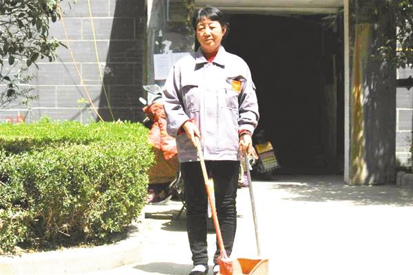 今年60岁的李索梅,是淮阳区万正小区元盈物业公司的一名保洁员,负责该小区北区A1到A3单元的路面及楼梯间保洁。平日里,李索梅在做好保洁工作的同时,和众多同事一样,会从垃圾堆里翻出一些可以卖钱的东西,卖给废品收购站。