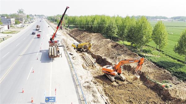 本报讯 4月20日,在周西路提升改造工程施工现场,上百辆工程车来回穿梭,一片繁忙景象。该工程自3月10日开工以来,施工单位抢抓施工黄金时机,倒排工期,加派人力物力,强力推进工程进度,力争10月1日竣工通车。