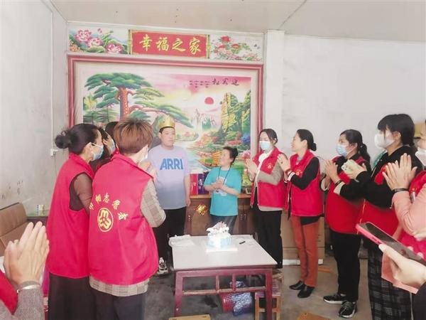 4月21日,项城市妇联领导肖连花、项城市骄阳公益团队王平、崔芳芳、王海霞等15位爱心妈妈,驱车30多公里为王忠庆祝14岁生日,并为王忠兄妹带去了新衣、慰问品和书籍等。