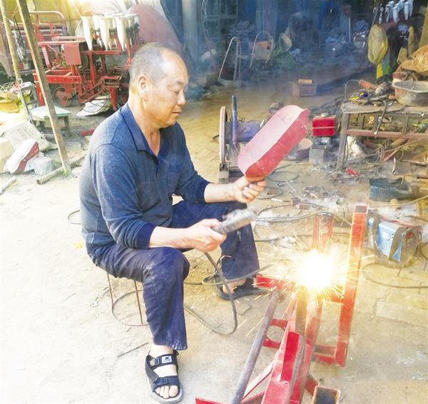 说干就干,蔚振宽开始动手鼓捣起来。可是仅有初中文化程度的他,一没图纸、二没模型,想研制成功现代化的农业机械难度可想而知。蔚振宽没有被困难所吓倒,没图纸,他就自己琢磨;没模型,他就购回电焊机,自学电焊技术,自己加工模型。就这样,他整天一个人在院子里,不停地在画图纸,然后焊制样机,
