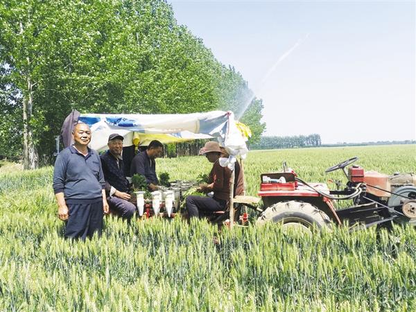蹲在齐腰深的麦田里,头顶烈日,汗如雨下,一把把地扒土,一棵棵地栽苗,一个小时下来,把人累得腰酸背痛……这是以前西华县艾岗乡椒农的切身体会。