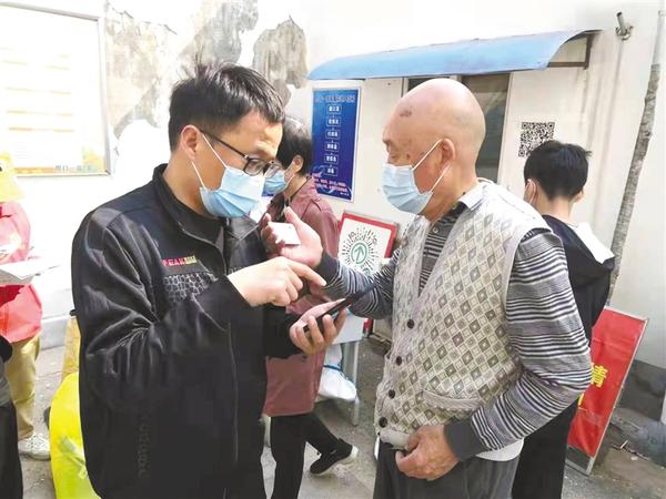 5月7日,周口市第十九初级中学党员干部为居民填写身份信息。当日,根据市、区疫情防控工作统一部署,川汇区对所有居民开展新一轮核酸检测。接到通知后,周口市第十九初级中学党支部在第一时间组织动员党员干部参加核酸检测采样志愿服务工作。记者 王河长 摄