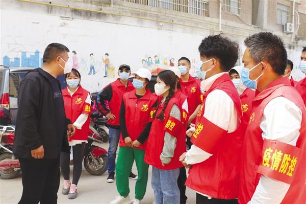 本报讯 党旗所指,团旗所向。连日来,郸城县青年党员、团员、青年志愿者积极响应号召,组建“青年突击队”,吹响“青春集结号”,主动下沉到所属社区、小区防控一线,充实基层防控力量,在防控一线展现青年担当、彰显青春风采,为坚决打赢这场疫情防控阻击战积极发挥作用。